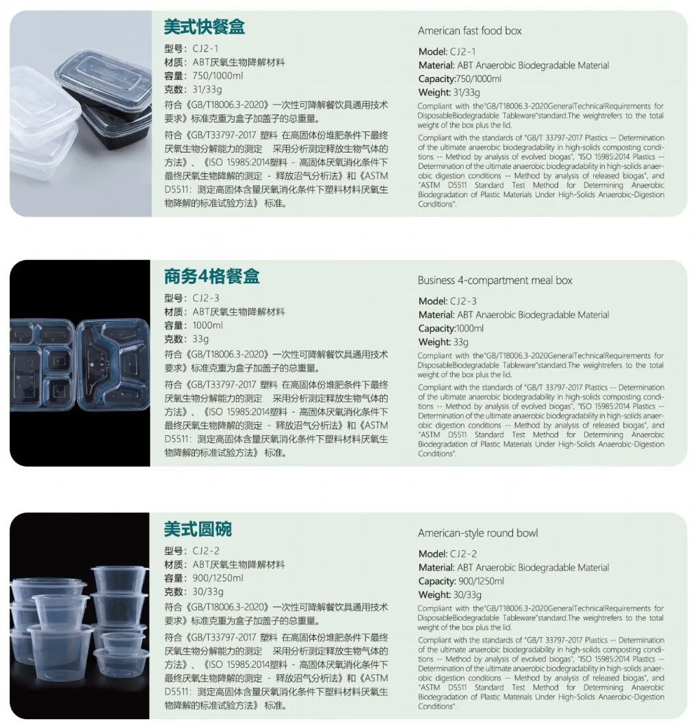 🌍 全场景覆盖,无缝衔接行业需求:从餐饮企业急需的一次性餐具、食品打包盒,到酒店行业必备的洗漱用品包装、客房一次性用品,再到航空公司的机上餐食容器、活动策划中的各类一次性耗材,厌氧生物降解产品形成了完整的产品矩阵,无需企业调整现有运营模式,即可实现一次性塑料制品的绿色升级,大大降低了行业转型成本。